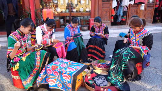 一针一线都是文化,一花一朵都是文明。有着1700多年历史的彝族刺绣是楚雄市大过口乡世代传承的一项古老技艺。绣坊里,绣娘们在飞针走线中增收致富,在丝线交织中绘就文明。