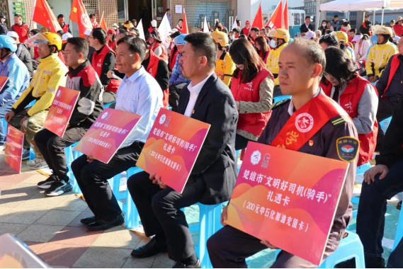 为充分发挥先进典型示范引领作用,本次活动在公交车、出租车、网约车、外卖骑手、快递员等行业中评选出一批具有示范带头作用赵军和等10名“文明好司机(骑手)”,并发放了礼遇卡,同时文明交通志愿者代表李开跃宣读了文明交通倡议书。