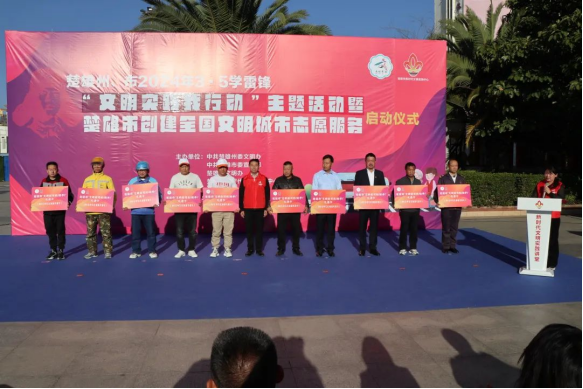 为深入学习贯彻党的二十大精神,大力传承弘扬雷锋精神,巩固提升全国文明城市创建成果,引导广大党员干部群众践行社会主义核心价值观,3月5日上午,楚雄州、市2024年3·5“学雷锋·文明实践我行动”主题活动暨楚雄市创建全国文明城市志愿服务启动仪式在楚雄市新时代文明实践广场举行。