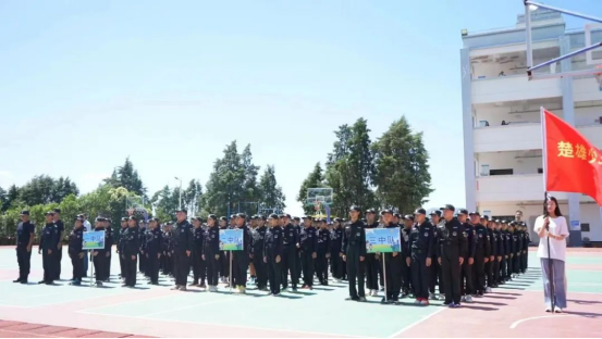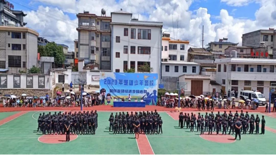 7月17日,2023年楚雄市少年警校暨民族团结进步同心营主题品牌活动开班仪式在楚雄市吕合镇初级中学举行,共青团楚雄市委、吕合镇、楚雄市教育体育局、市创建办等部门,训练教官、142名来自楚雄市各小学少先队学员等相关人员参加了开班仪式。开班仪式的举行标志着2023年楚雄市少年警校品牌活动正式启动。