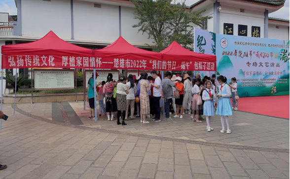 为培育和践行社会主义核心价值观、弘扬端午节日习俗,唱响“我们的节日”这一主题,让广大市民们通过端午节来体验我国传统节日的民俗文化,更好的继承和弘扬中华优秀传统文化,推进传统节日振兴工程,6月3日上午,楚雄市文化馆在龙江公园江心楼前,举办了专场文艺演出、包粽子比赛、亲子做彩灯、青少年美术作品展等一系列活动。