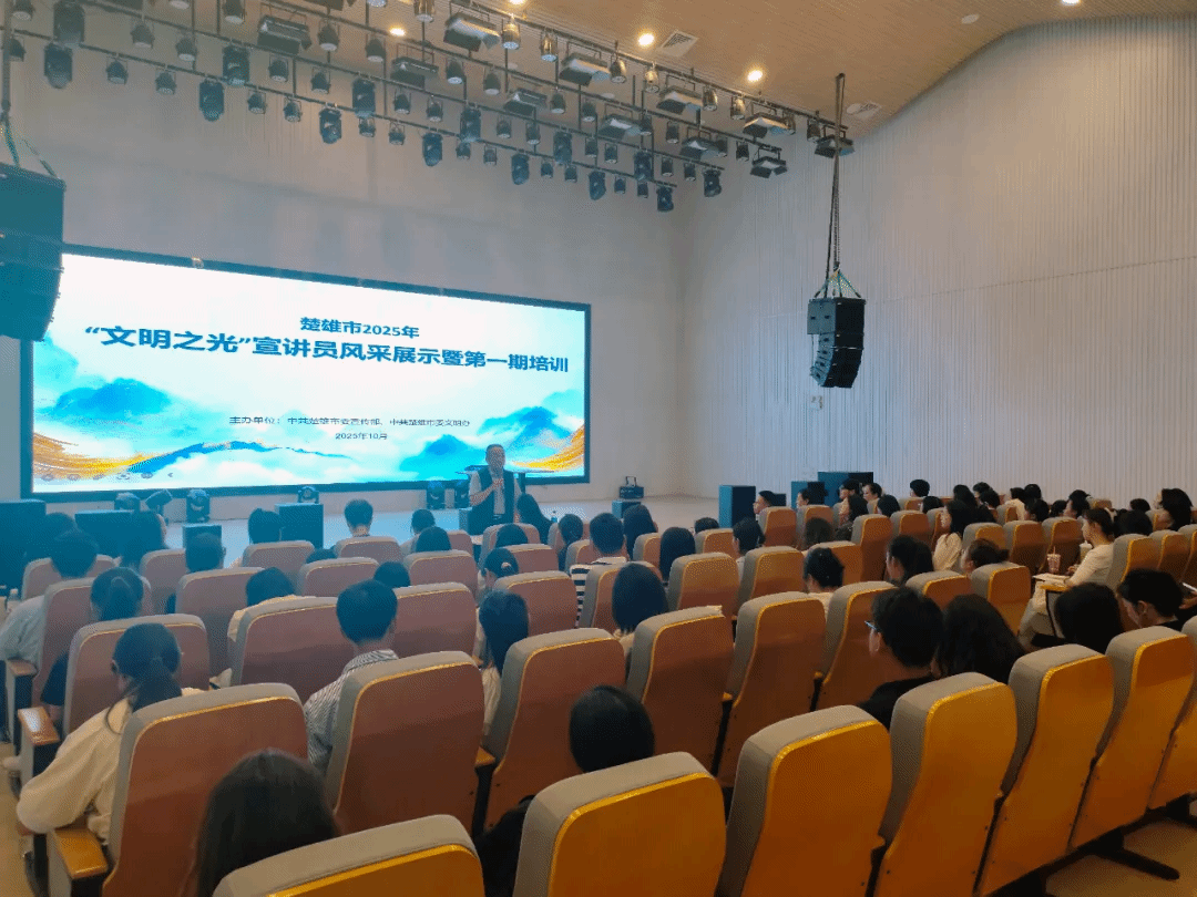 为扎实推进楚雄市精神文明建设工作,储备专业人才,建强我市“文明之光”宣讲员队伍,10月11日,楚雄市委宣传部、楚雄市委文明办在长征国家文化公园(楚雄段)开展2025年楚雄市“文明之光”宣讲员风采展示暨第一期培训活动。活动邀请云南省演讲家协会秘书长,原州委宣传部文产办主任周兵老师出席并为选手开展培训指导,80余位宣讲员参与活动。
