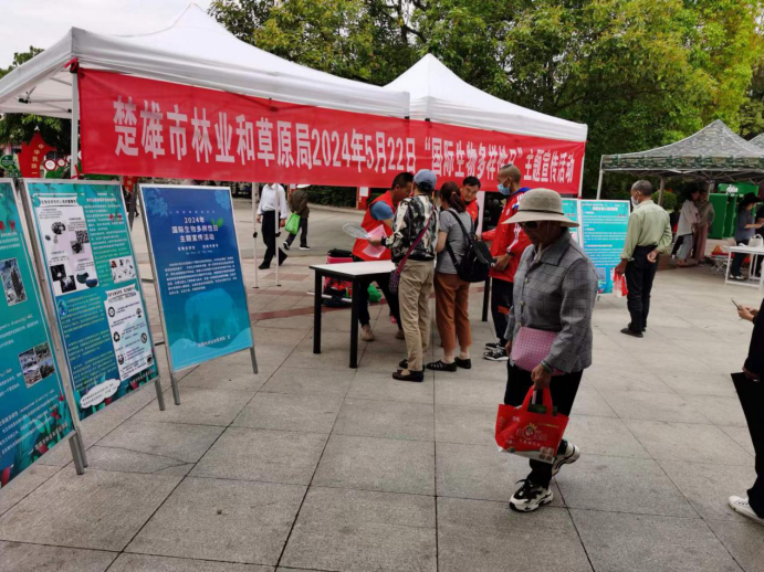 在活动现场,通过宣传展板详细介绍生物多样性保护日的由来,什么是生物多样性?生物多样性对人类的重要性。保护生物多样性,我们能做什么?外来有害生物防范等生物多样性保护的基础知识内容。工作人员向广大市民讲解、宣传生物多样性保护措施、湿地生态系统动植物、环境保护等相关科普知识,发放生物多样性保护知识图片、海报等宣传资料1500余份。希望通过保护生物多样性宣传,让越来越多的珍禽异兽、奇花名木在楚雄大地上繁衍生长,尽显自然之美、生态之美。呼吁广大群众珍爱每一物种,共绘生态蓝图,进一步提高全社会共同参与生物多样性保护意识,共同守护生物多样性,共建美好家园。