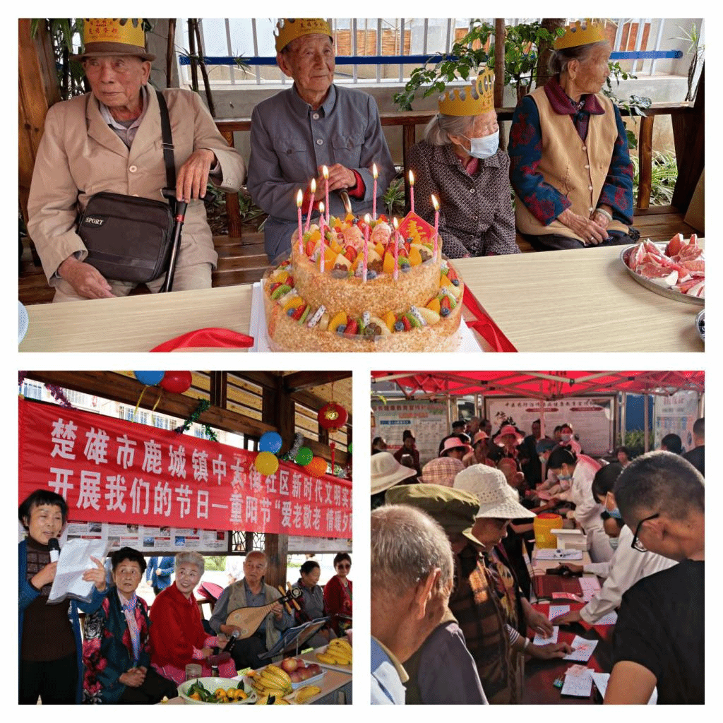 鹿城镇各村(社区)结合实际,借助“我们的节日·重阳节”开展文艺演出、为老人们过集体生日、爱心义诊等活动,与辖区老人共庆重阳节。一场场热闹的文艺演出让台下老人看得津津有味,京剧、舞蹈、小品、合唱等节目都是老人们亲自排练演出,红色老歌《没有共产党就没有新中国》让现场的老同志们斗志昂扬,激情澎湃,泪湿了眼眶……;义诊现场,医护人员为老人们测量血压、听诊检查,耐心地听老人们讲述自己的病症,为一些长期服药的老人提出服药合理化建议。根据身体情况免费发放降血压、调理肠胃、常用感冒药等药品,共为老年人免费测量血压1000余人次,发放免费药品500多盒。