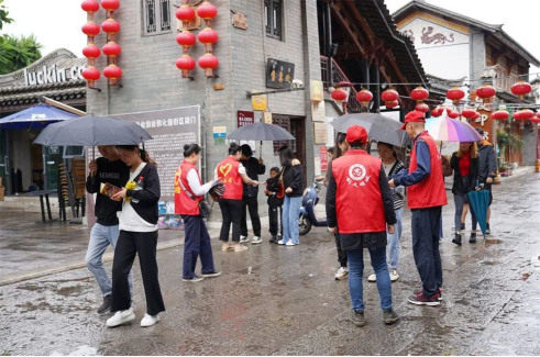 讲文明树形象,文明实践暖民心。国庆期间,楚雄市彝人古镇社区志愿者向市民和游客发放文明旅游倡议书、文明旅游安全须知等宣传资料,为彝人古镇、彝人部落、清明河的“月满中秋话团圆”寻月游园会和“花好月圆·民俗共赏”传统文化活动提供景区卫生保洁、游客咨询等志愿服务,为游客创造温馨、舒适的旅游环境,展现楚雄文明新形象。