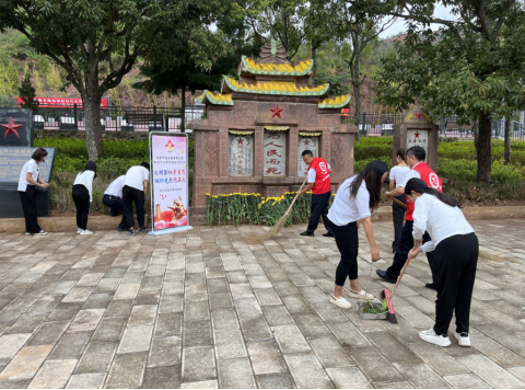 缅先烈思奋进,文明实践育新人。在鹿城镇富民社区“弘扬革命精神 缅怀革命先烈”烈士纪念日主题活动中,社区副书记为大家介绍富民烈士陵园革命先烈的英雄事迹,共同打扫陵园卫生,向革命烈士敬献鲜花,共同缅怀革命先烈。