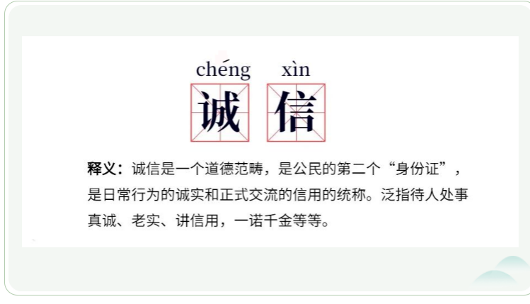 所以,“诚信”二字需要拆开来看。诚,是内在的品质;信,则是外在的表现。怀着诚实不欺的心,并付诸实际行动,这就是“诚信”。