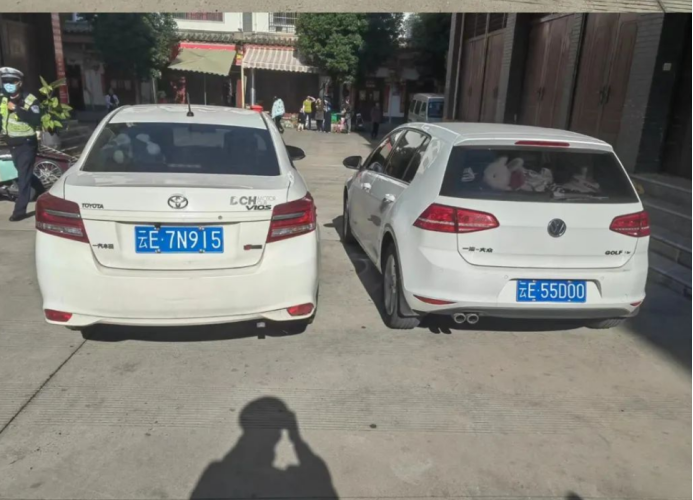 11月2日上午,楚雄市公安局交警大队接到110指挥中心指令,有人报警称自己的车辆被套牌,两辆车在同一个小区“相遇”了。民警接报后立即组织人员到达现场,对车辆进行分析研判。民警发现,两辆不同品牌型号的白色轿车,号牌居然是同一个。在核对车辆信息后发现,其中一辆造了假。车主给出的理由竟然是为了方便进出小区,便冒用了他人车辆号牌。