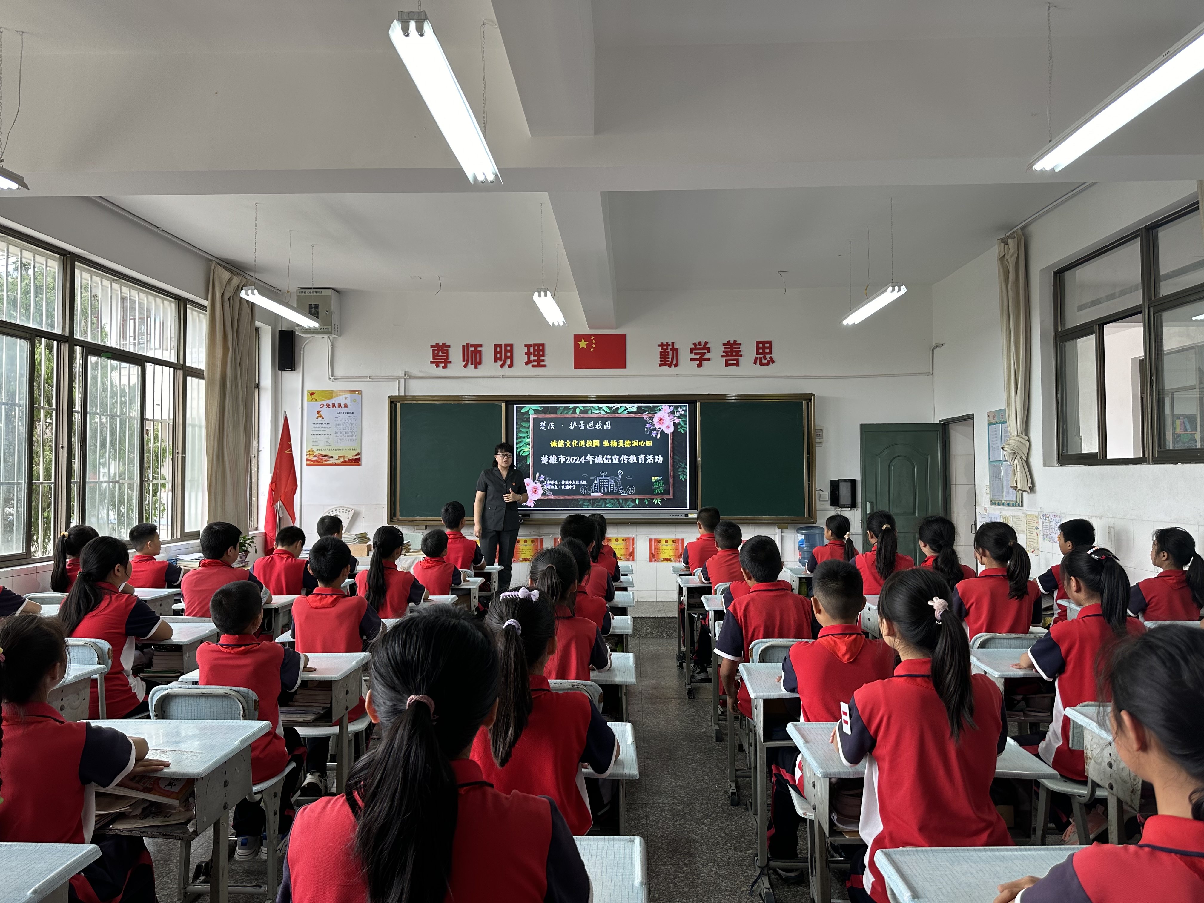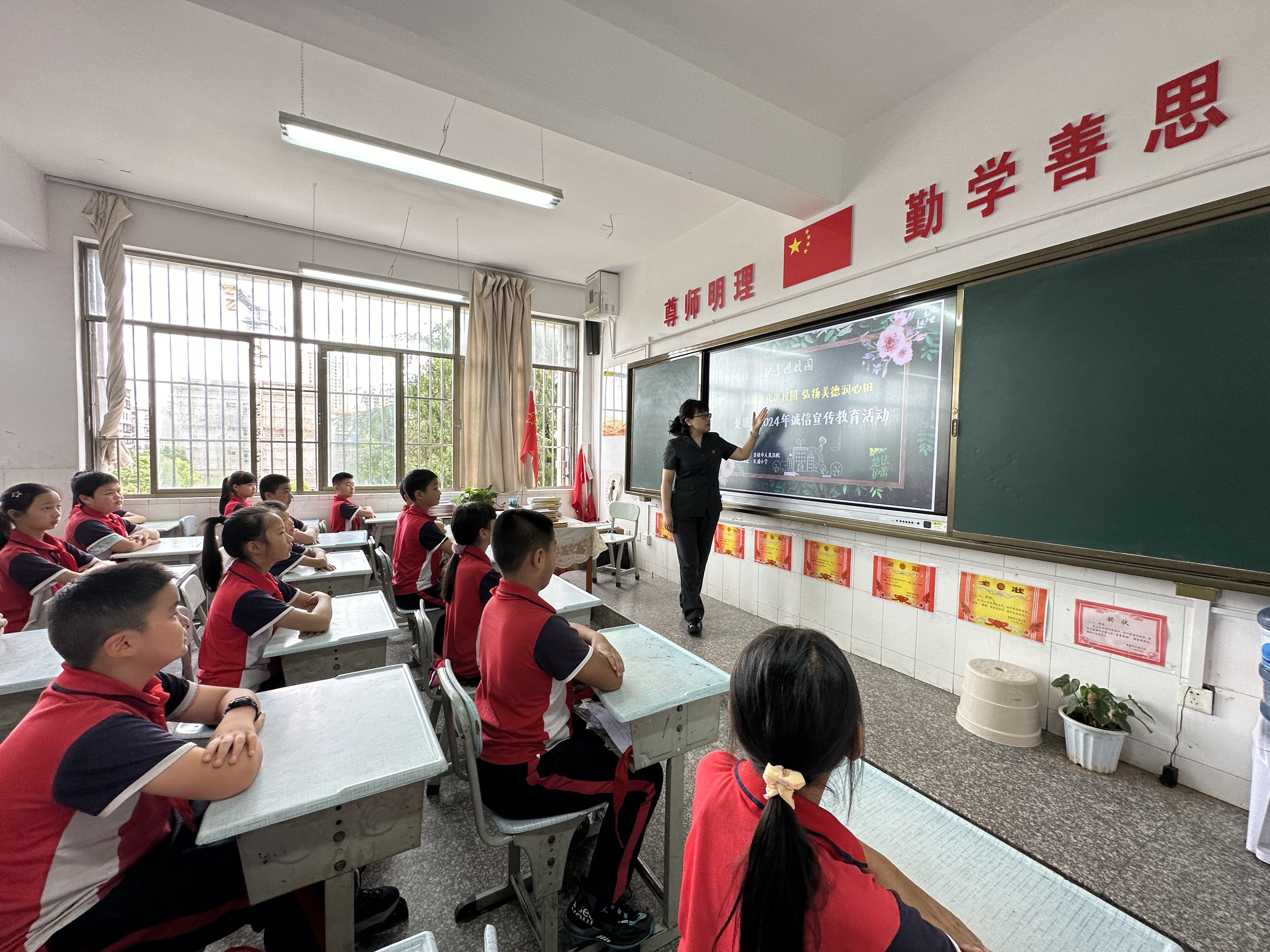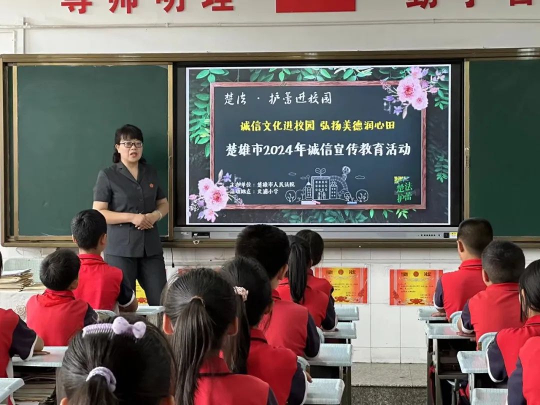 为进一步弘扬中华民族传统美德,加强学生思想道德建设,倡导和弘扬诚实守信的良好风尚,引导青少年学生深刻领会并体悟践行“言必信、行必果”的中华文化内涵,培养诚实守信的良好品德,结合“楚法 护蕾”普法专项行动,7月10日,楚雄市人民法院法治副校长秦丽走进北浦小学,为学生们带去一堂“诚信宣传教育”专题法治教育课。