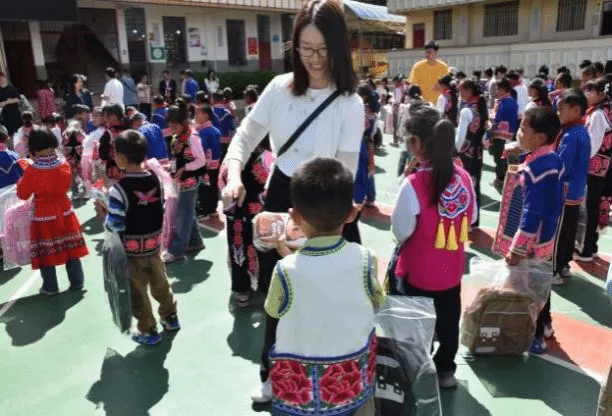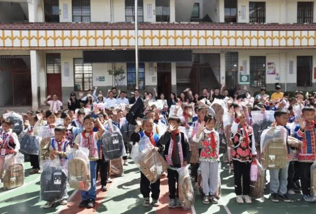 活动现场暖意融融,爱心企业带来的图书文具、体育器材等物资整齐堆放,承载着对孩子们的殷切期盼。收到这份特别的“礼物”后,板凳山民族小学的师生们满怀感恩,将亲手绣制的彝绣荷包赠予爱心人士——这些绣着民族纹样的荷包,凝聚着孩子们的心意,也展现着民族文化的灵动。随后,孩子们身着民族服饰,献上了极具彝族特色的歌舞表演,欢快的旋律与纯真的笑容,让现场充满了欢声笑语。