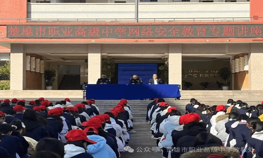为切实提升青少年预防网络成谜和网络安全防范意识,有效遏制针对青少年的网络诈骗案件高发态势,2025年12月17日下午,楚雄市职业高级中学特邀楚雄市公安局治安大队民警到校开展以“预防网络沉迷 防范网络诈骗”为主题的专题讲座。