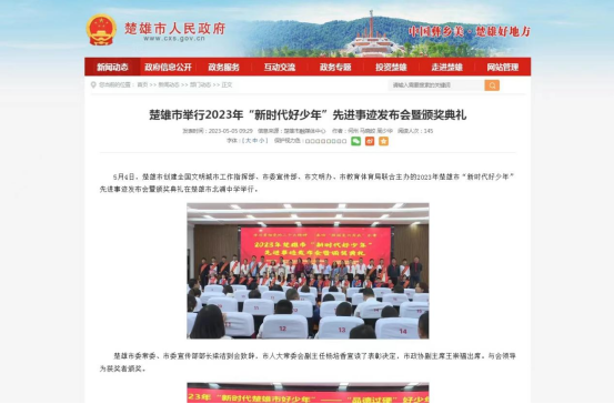 楚雄市各新闻媒介通过电视台、楚雄市文明网、数字楚雄等进行宣传报道,各学校利用LED显示屏、国旗下讲话、班会活动、微信公众号等形式多样的宣传方式,营造了“学先进、赶先进、当先进”的浓厚氛围,让未成年人感受榜样的力量。教育培养未成年人从小养成良好的行为习惯和道德品质,从身边点滴小事做起,努力争做新时代的追梦人。
