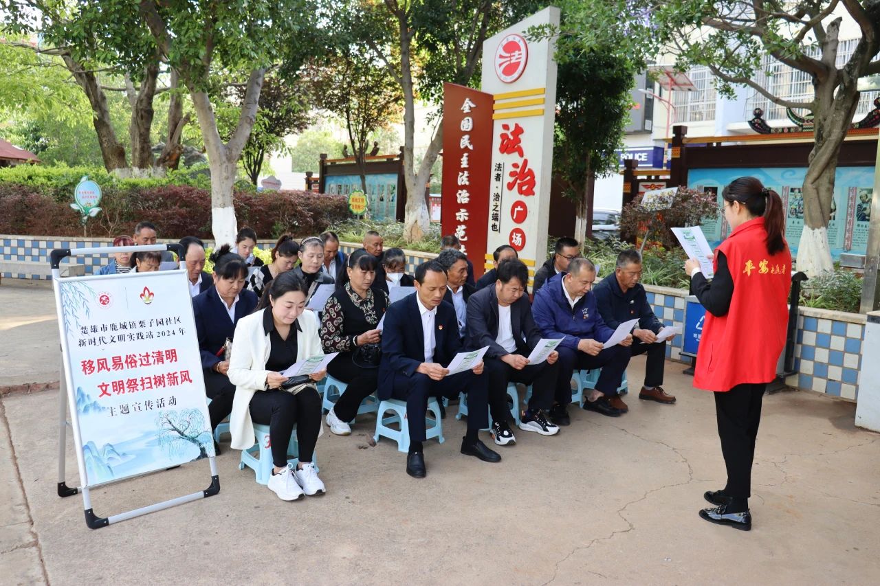 在文明实践中破除陈规陋习、传播文明理念、涵育文明风尚。“提倡不收高价彩礼、不大摆宴席,不乱埋乱葬……”在推进移风易俗过程中,新村镇洒树咪村委会广泛征求村里老党员、群众代表等意见建议,经过充分讨论,将婚事新办、丧事简办等内容写入《村规民约》,成立红白理事会,在节假日期间,组织新风文明劝导志愿服务队开展移风易俗宣传活动,及时做好村民的思想工作,倡导婚丧嫁娶一切从简。各乡镇司法所开展普法课堂,解读《关于审理涉彩礼纠纷案件适用法律若干问题的规定》等条例,引导群众坚决遏制高额彩礼之风,并通过实际案例,宣讲民法典婚姻家庭版有关内容,呼吁广大妇女姐妹及家庭学会用法律武器维护自身合法权益。制定下发《楚雄市开展高价彩礼、大操大办等农村移风易俗重点领域突出问题专项治理工作实施方案》等文件,坚持标本兼治,先后开展高价彩礼、大操大办等移风易俗重点领域突出问题专项整治126次,督促问题整改27个,有效遏制陈规陋习势头蔓延。