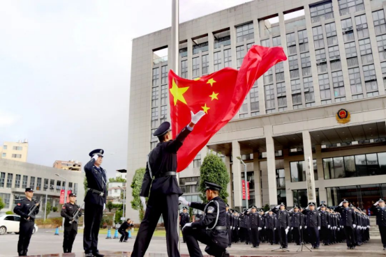 忆初心担使命,文明实践聚合力。10月1日上午,楚雄市公安局全体干警通过举行国庆升国旗仪式,表达对伟大祖国的深情祝福和无限忠诚。通过活动激发广大公安民警爱国热情,引导全警坚定理想信念,筑牢忠诚警魂,为“平安楚雄”建设添砖加瓦。