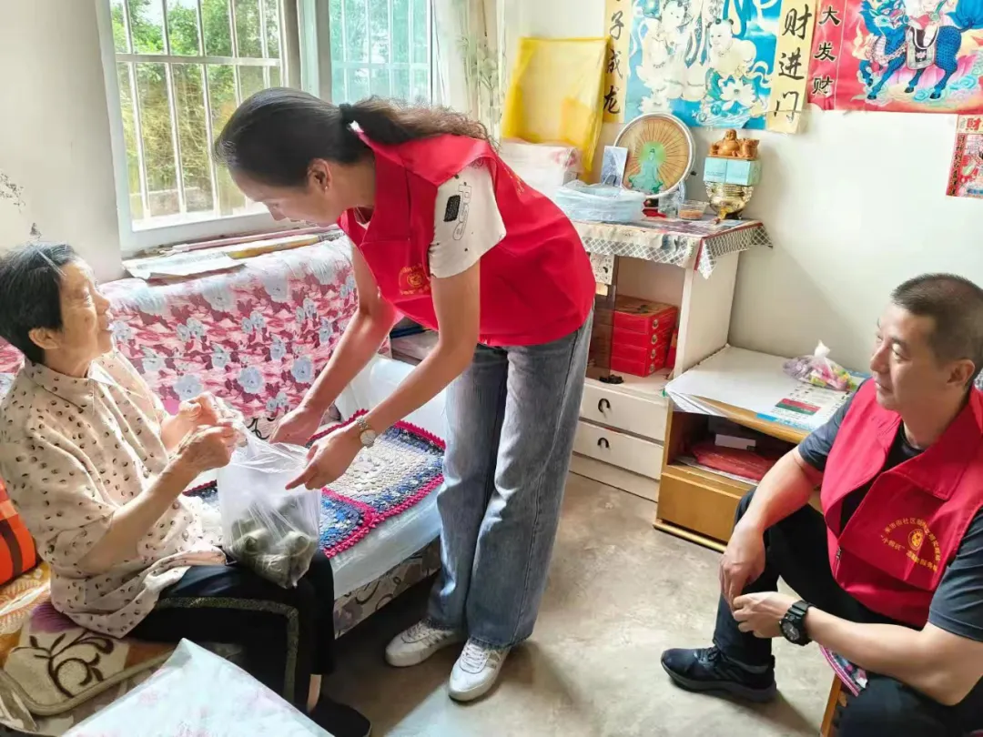 “彩线轻缠红玉臂,小符斜挂绿云鬓",大伙儿各展所长,分工合作,将节日的祝福包裹进一个个饱满可爱的粽子中。另一边的人员也不甘示弱,不一会蒸笼里就整齐摆满了晶莹剔透的包子,现场欢声笑语,洋溢着节日的浓厚氛围。同时,“小棉袄”志愿服务队还专程上门慰问9名行动不便的老人和特殊人员,为他们送去香甜的粽子和节日的祝福,详细询问他们的身体和生活情况,让他们感受到社区的温暖和真诚。