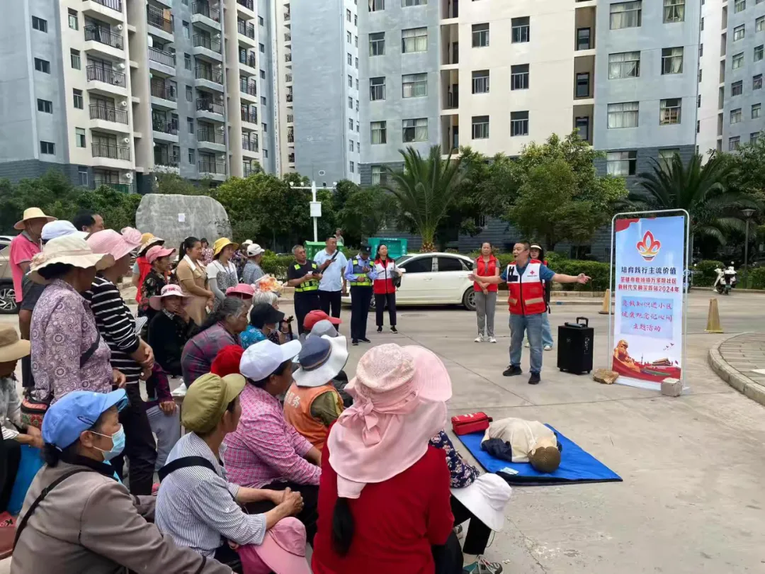 6月4日下午,万家坝社区联合楚雄州红十字会、楚雄州人民医院临床营养科到铜鼓花园小区开展了急救知识培训和健康饮食科普。
