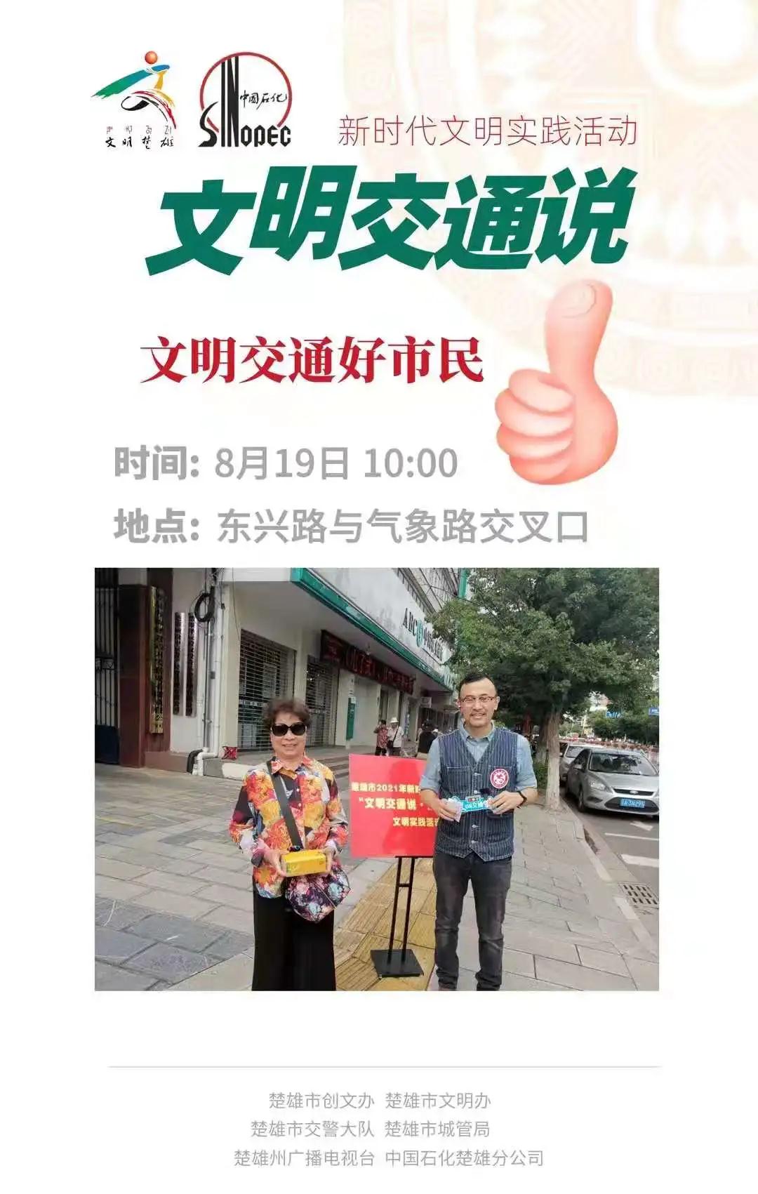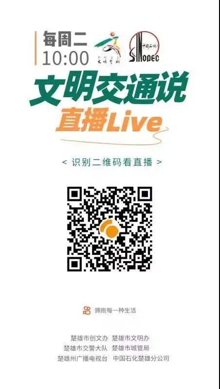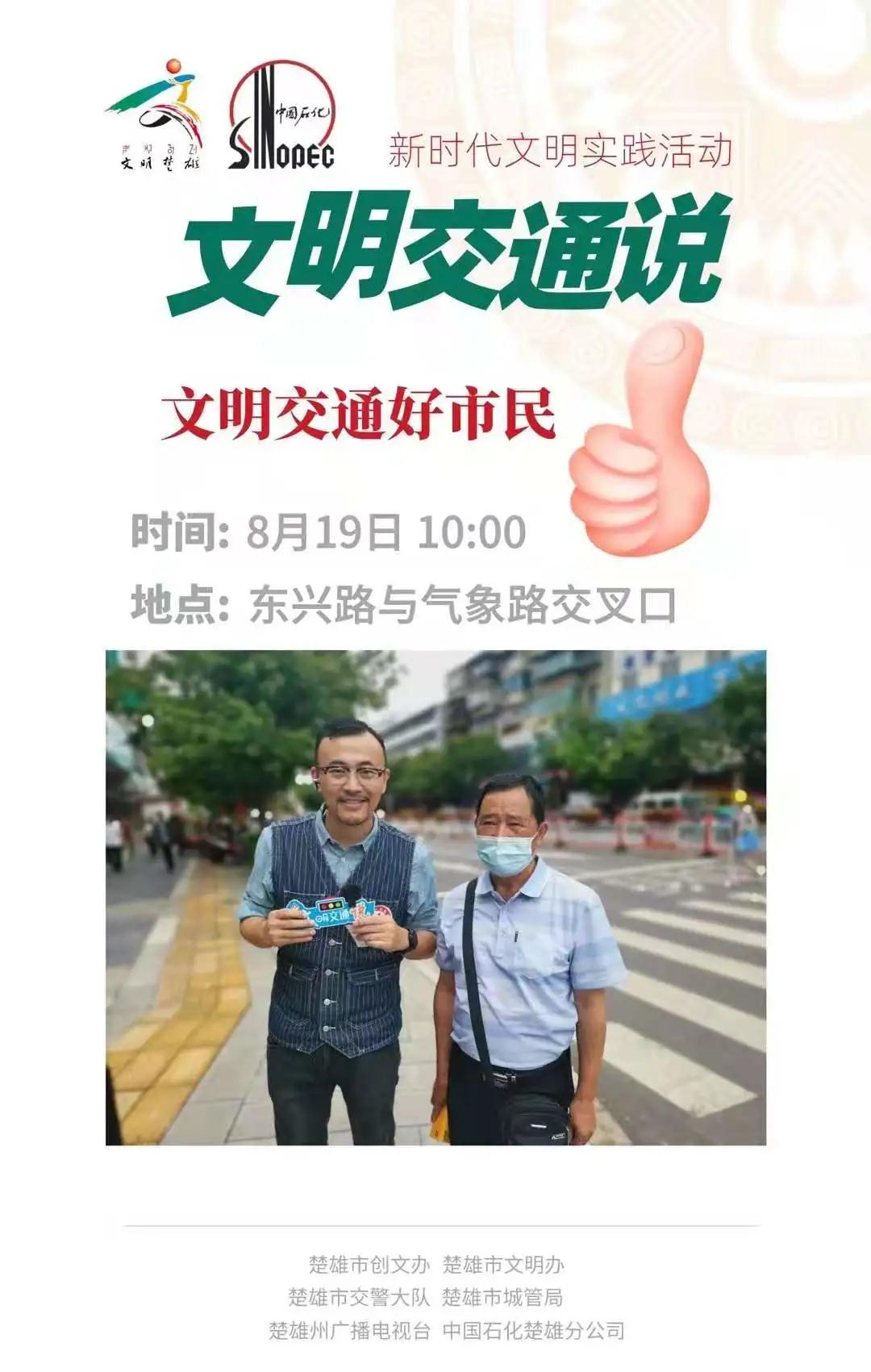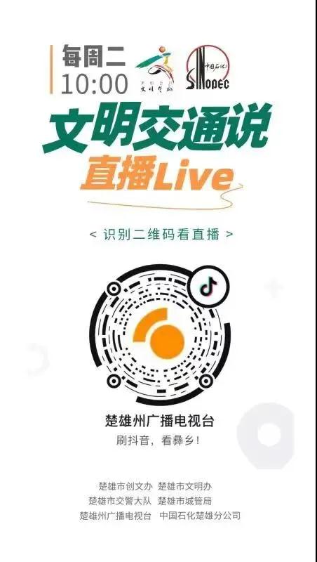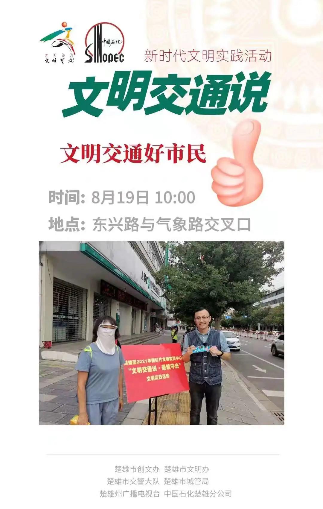 8月19日上午10 点,开展第四期“文明交通说”新时代文明实践直播活动,活动由楚雄市创文办主办,楚雄市新时代文明实践中心、市交警大队、市城管局、楚雄州广播电视台承办,中石化楚雄分公司全情赞助。