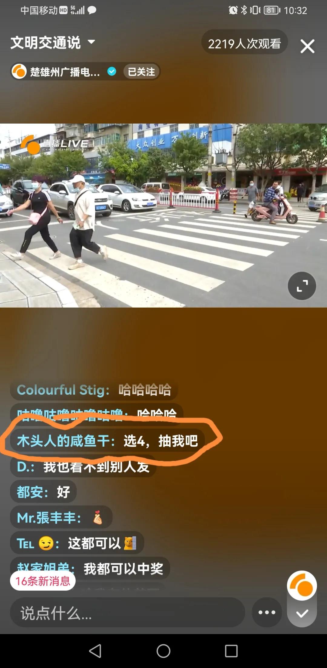 直播过程中,很多网友都通过“楚雄州广播电视台”官方微信、抖音、快手账号参与到了我们的直播活动中,主持人在现场抽出了5位幸运网友,中石化楚雄分公司为他们准备了每人2提卷纸和1箱矿泉水作为积极参与我们直播互动的礼品,请这5位网友在8月31日以前,到楚雄市小河口中国石化加油站去领取你们的礼品,超过时限不去领取的就视为自动放弃,不再进行补发。希望更多的网友能出现在我们每一期的直播间,和我们一起说文明、话交通。
