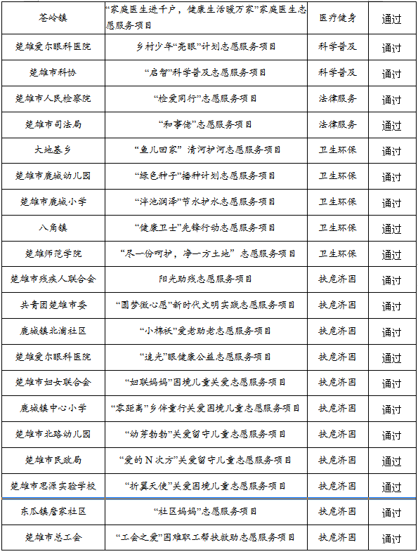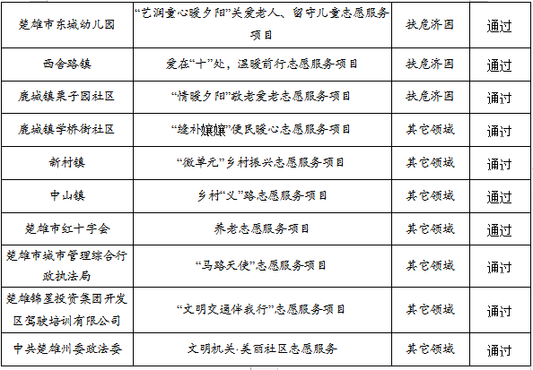 附件:楚雄市第二届“威楚志愿汇”新时代文明实践志愿服务项目大赛通过初审名单