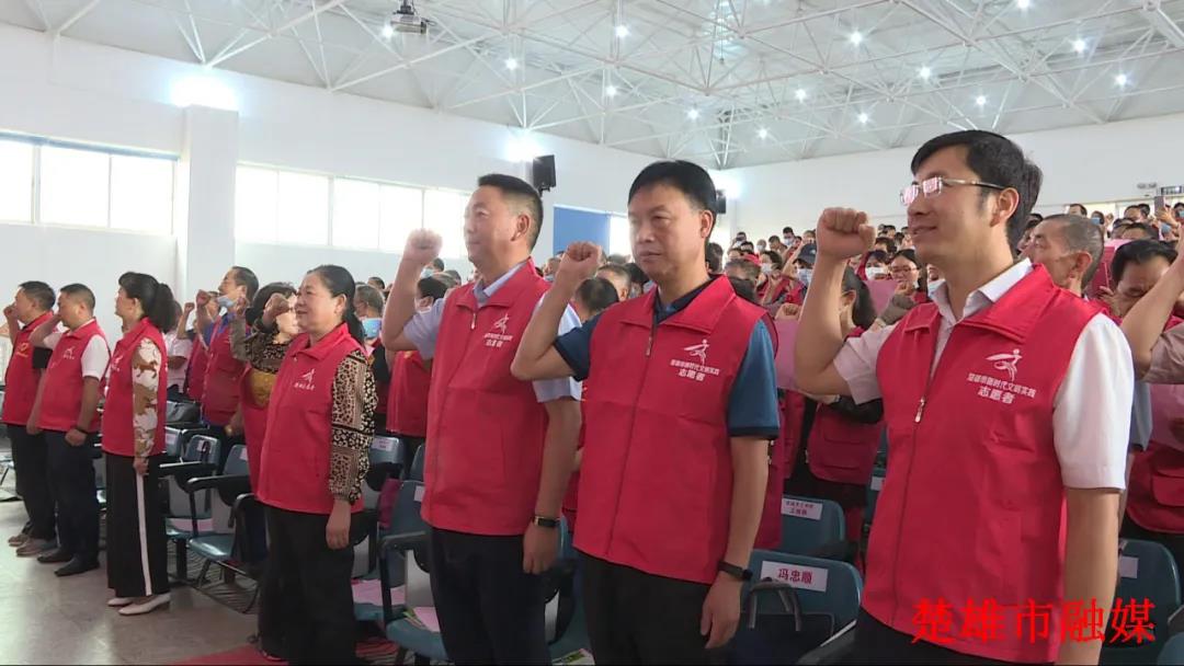 在现场,全体银发志愿者还进行集体宣誓,承诺践行志愿精神,争做“三个表率”,积极投身新时代文明实践,自觉自愿、不计报酬,帮助他人、服务社会,量力而行、发挥余热,为楚雄文明助力,为彝州发展加油。
