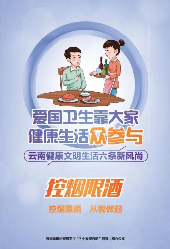 (六)控烟限酒健康生活。号召全市各级党政机关积极开展无烟党政机关创建;政府机关公职人员、医务工作者和教师带头不在公共场所吸烟,为全社会做出表率;所有室内公共场所和工作场所禁止吸烟,劝阻并引导吸烟人员到室外吸烟区吸烟。倡导全体市民不吸烟、不敬烟、早戒烟,对室内公共场所吸烟情况勇敢说“不”;少饮酒、不劝酒、不酗酒,不酒驾。