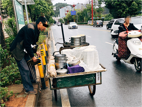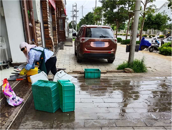 固业路餐馆 乱泼污水、拖把乱吊挂。