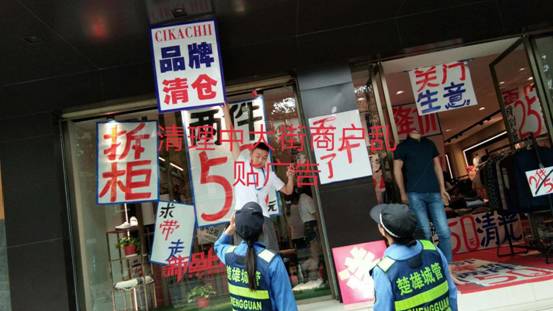 中大街服装店 广告乱张贴、乱吊挂,噪音扰民。