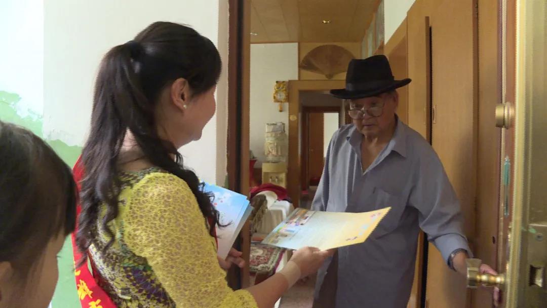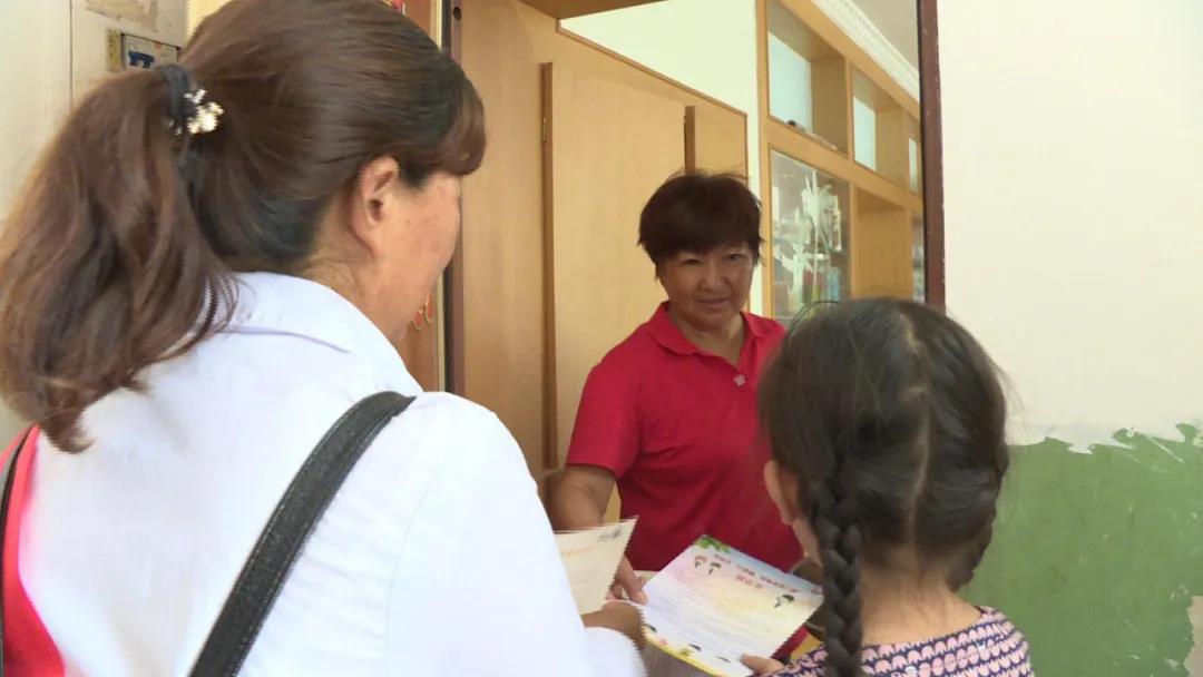 文明家庭边向市民发倡议书边说:“创文到了冲刺阶段了,给你们发一份倡议书,倡议大家争做好市民,出门佩戴好口罩,垃圾不要乱扔,车辆也不要乱停乱放,谢谢您的配合。”