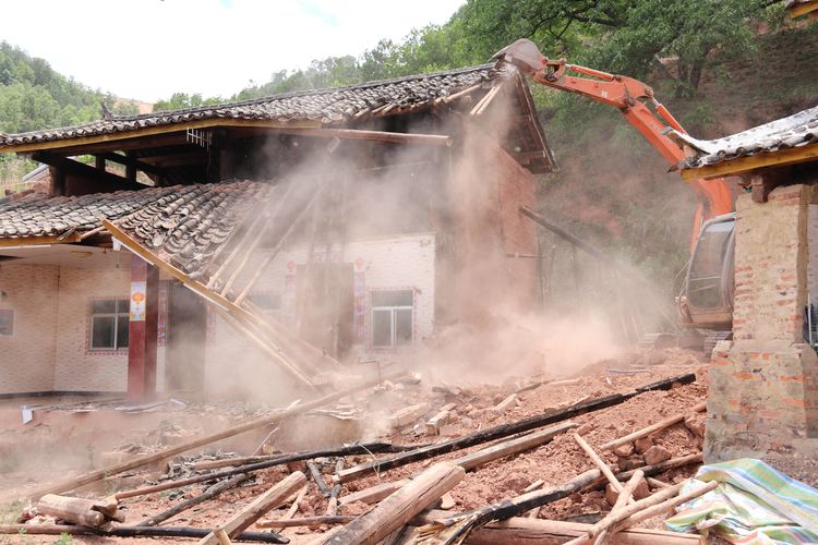 会议现场对落水洞小组危房进行了拆除,为下步拆危工作打下样板、做出示范。