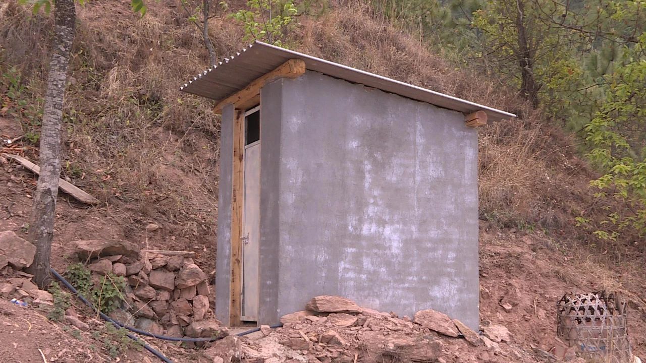 大地基乡水卷槽村委会村民 姚显贵:旧那个是不卫生,这个是卫生,我们用了一个多月,苍蝇也没有,臭也不臭,又干净、又卫生,又近,方便,享国家的福,要的成呢。