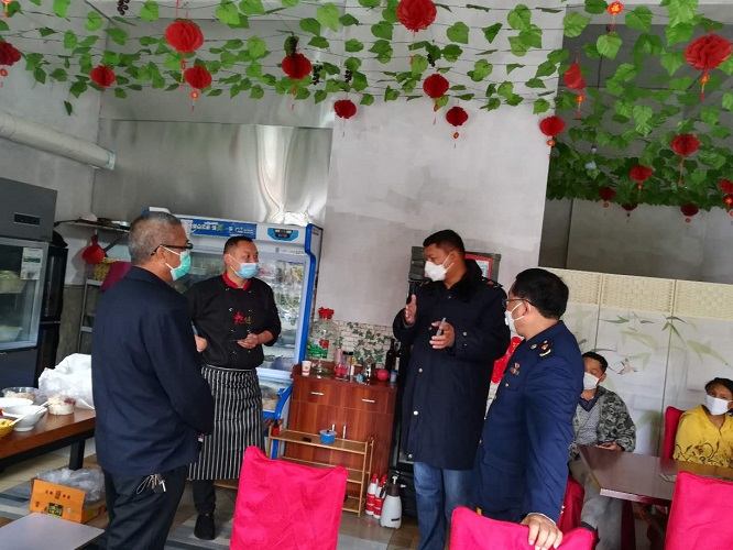 五是严格监管,全天候巡查,防控不松懈。 采取“领导带队、分片督导;机关下所、科所结对;上下联动、分段管理、精准服务”的工作模式,把城区划分为五个片区,成立五个复工复市工作组,细化工作责任,每天分组对辖区复工的经营单位进行巡查,查看复工企业经营场所提示宣传、体温测试、清扫消毒记录等主体责任落实情况,对食品安全、包装储存、经营场所卫生状况进行检查;同时专门成立两个应急巡查分队,利用午间、晚间对复工餐饮单位禁止店内聚集的履行情况进行检查和监督,对聚餐人员进行说服劝导,要求经营者、消费者必须始终绷紧安全弦,强化细化疫情防控措施,做到防控空间无死角,防控时间无空白,从源头上阻断疫情进一步扩散蔓延,确保人民群众消费市场安全和社会稳定。