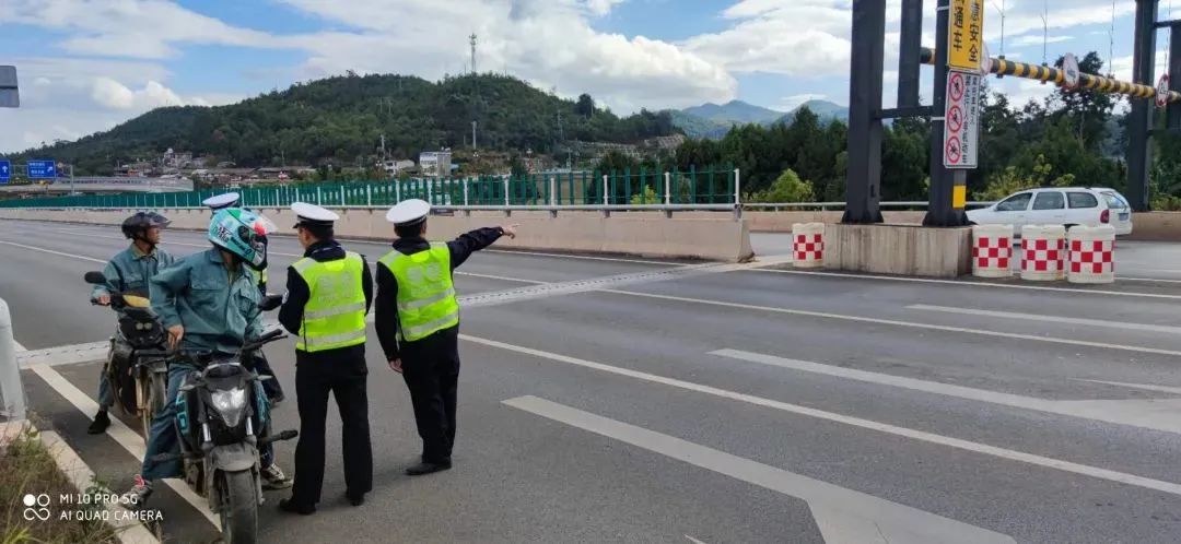 对禁止进入灵秀立交桥的摩托车、行人、非机动车、货车、拖拉机进行劝导教育