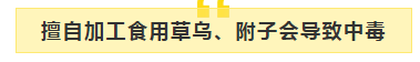 一、不要擅自加工、食用和邀请他人食用草乌、附子等乌头类物质及制品(包括自制的泡酒),以防中毒。
