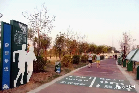 据统计,楚雄市2017年完成绿色健康步道建设62公里,红色自行车道建设50公里。主要位于峨碌公园、彝海公园、北浦路、航空路、鹿城西路、鹿城南路、鹿城北路、中大街、青龙河西路、阳光大道、雄宝路、万家坝茶花大道等城区主要道路及公园。2018年在福塔公园、阳光大道(茶花大道至雄宝路)、雄宝路(小姑英街至阳光大道)、鹿城东路(雄宝路至青龙河西路)、团结路、白龙路、茶花大道一标段等道路建设绿色健康步道13公里,红色自行车道17公里。2019年实施彝海北路(鹿城南路至雄宝路)健康步道1.7公里。