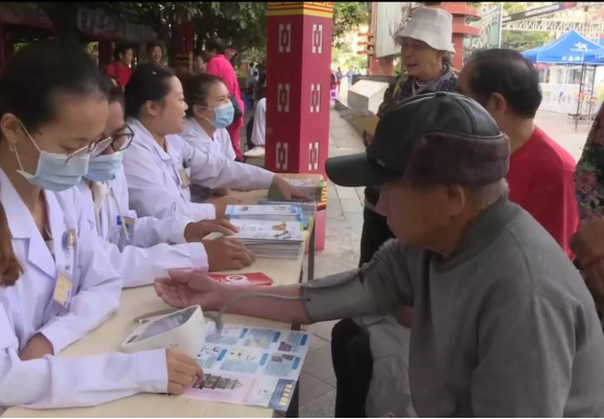 活动中,来自州市15家医疗机构及市属部门的医务人员、志愿者通过宣传展板、设立咨询台开展健康知识宣传,开展测血压、称体重等义诊活动。