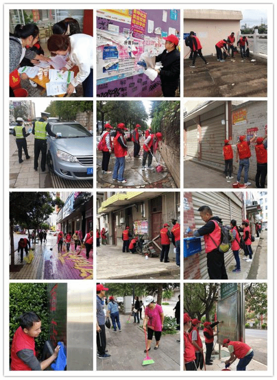 辖区共驻共建单位志愿者们围绕清理周边商住小区小广告、宣传文明、卫生城市和爱国卫生“7个专项”行动工作的精神、规范人行道乱停乱放、劝导占道经营和乱贴乱挂的不文明行为、绿化卫生整治和清理街道两旁行道树周围的烟头等内容开展活动。