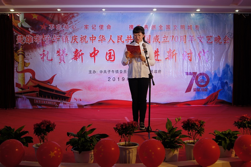 伴着金秋明媚的阳光,迎着十月的云淡气爽,中华人民共和国迎来了七十岁华诞。9月29日晚,子午镇在镇政府礼堂隆重举办“礼赞新中国.奋进新时代”主题文艺晚会。镇党政班子成员、机关站(所)全体干部职工、中小学校部分师生、子午村委会部分群众700余人观看了晚会。