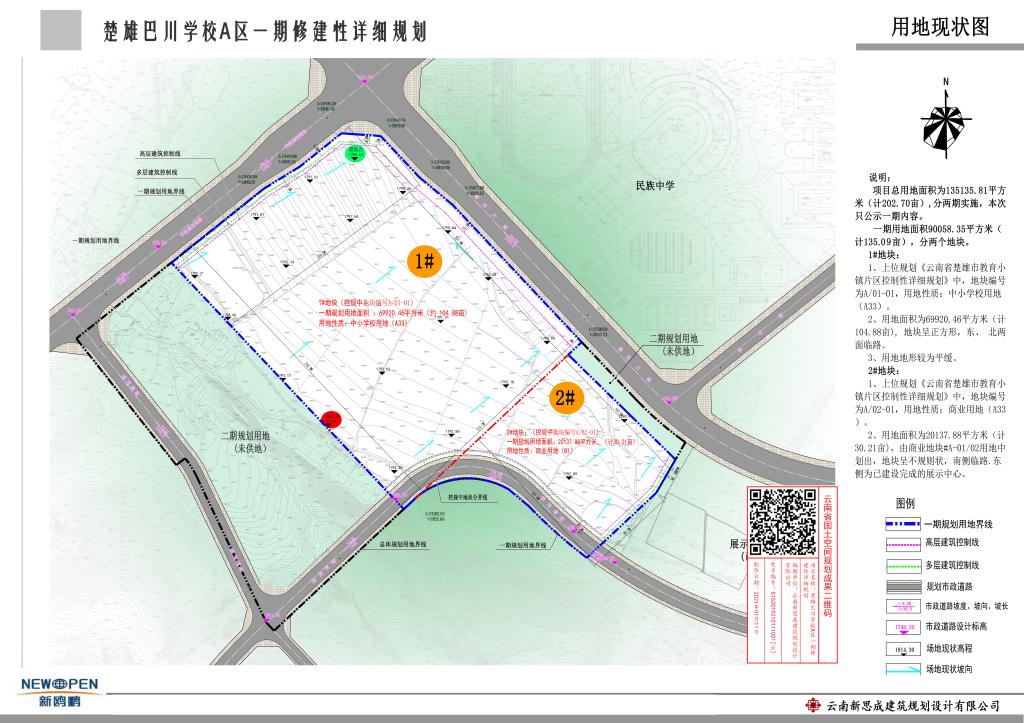 项目名称:楚雄新鸥鹏教育小镇楚雄巴川学校A区一期修建性详细规划