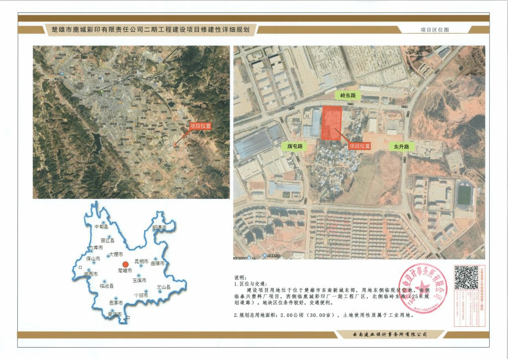 项目名称:楚雄市鹿城彩印有限责任公司二期工程建设项目修建性详细规划