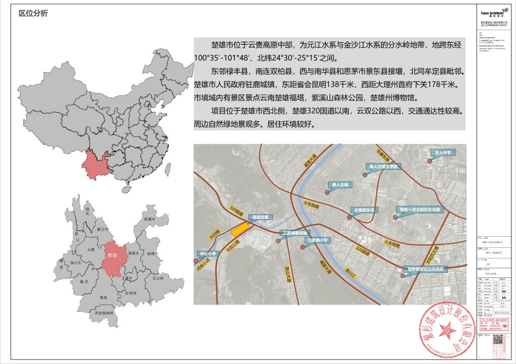 项目简介:尚亿·紫溪壹号项目用地位于楚雄市西北部,地块东临元双公路,南临汽车博览小镇一期项目用地,西临河前小河,北临320国道,规划用地面积50亩。尚亿·紫溪壹号修建性详细规划于2020年9月9日审定实施,现楚雄亿丰市场开发有限公司提出在保持该项目总平面规划、交通、竖向以及各项经济技术指标均不变的前提下,将该项目分两区实施。