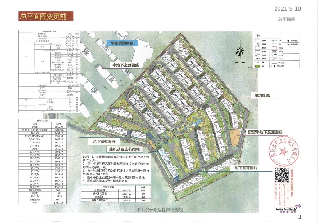 项目简介:万景·平山院子项目用地位于楚雄市东南新城北侧,地块东临楚风苑,南临万景·平山院子二期项目用地,西临平山暮雨项目用地,北临现状山体,规划用地面积64.64亩。万景·平山院子修建性详细规划于2020年7月1日审定实施,现楚雄市万腾房地产有限公司提出在保持该项目总平面规划、交通、竖向不变,各项经济技术指标满足相关规范要求、技术标准的前提下,对该项目修建性详细规划进行变更。变更的具体内容如下: