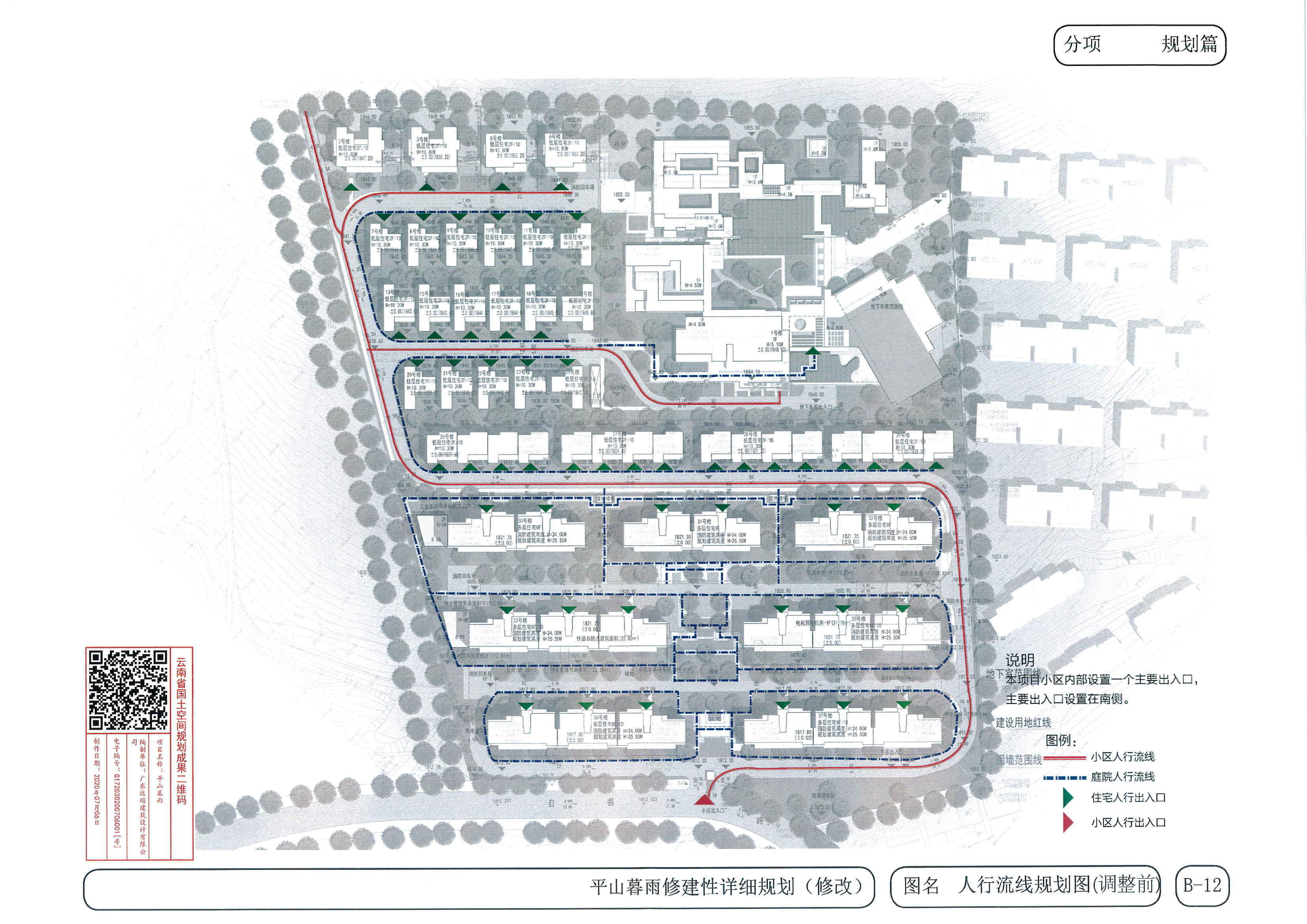 项目简介:平山暮雨项目用地位于楚雄市东南新城北侧,地块东临万景·平山院子项目用地,南临自强路,西、北临现状山体,规划用地面积80亩。平山暮雨修建性详细规划(修改)于2020年7月24日审定实施,现楚雄永兴彝海房地产开发有限责任公司提出在保持该项目总平面布局、竖向设计、工程管线设计、建筑设计方案不变,且满足相关规范要求、技术标准,同时征得已销售房产数量2/3以上业主同意的前提下,对该项目修建性详细规划进行变更。变更的具体内容为:取消30、31、32号楼北侧连通场地分台的2部室外楼梯。