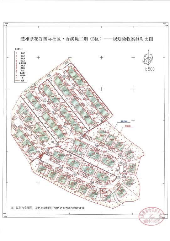 3.楚雄茶花谷国际社区香溪堤二期(B区)建设项目规划验收实测对比图。