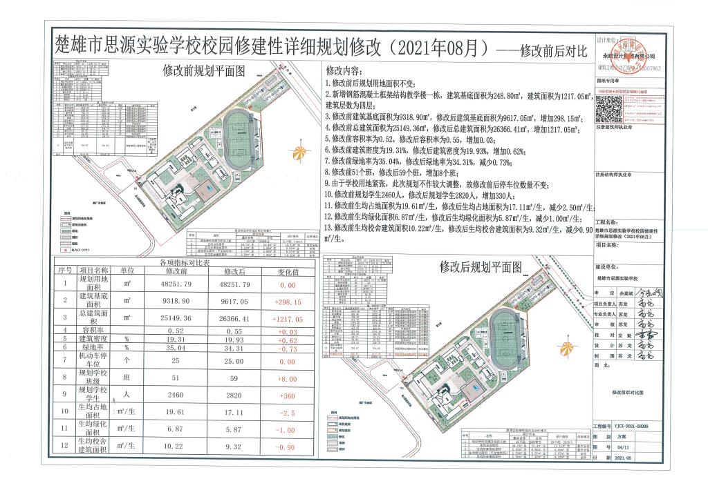 楚雄市思源实验学校校园修建性详细规划修改前后