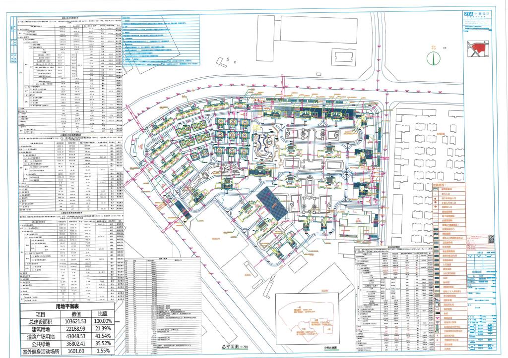 其中地上建筑面积129006.00㎡(其中计容建筑面积127059.77㎡,不计容建筑面积1946.23㎡),地下建筑面积48271.73㎡;建筑密度24.15%,容积率1.73,绿地率39.79%,机动车停车位1221个(其中地上停车位62个,地下停车位1159个)。现状幼儿园室外活动场地未实施,实测正负零标高比规划正负零标高降低91厘米,因幼儿园位置与二三期项目相邻,室外活动场地作为二三期临时施工通道使用,建设方承诺在2022年10月30日前严格按照规划方案恢复原状。