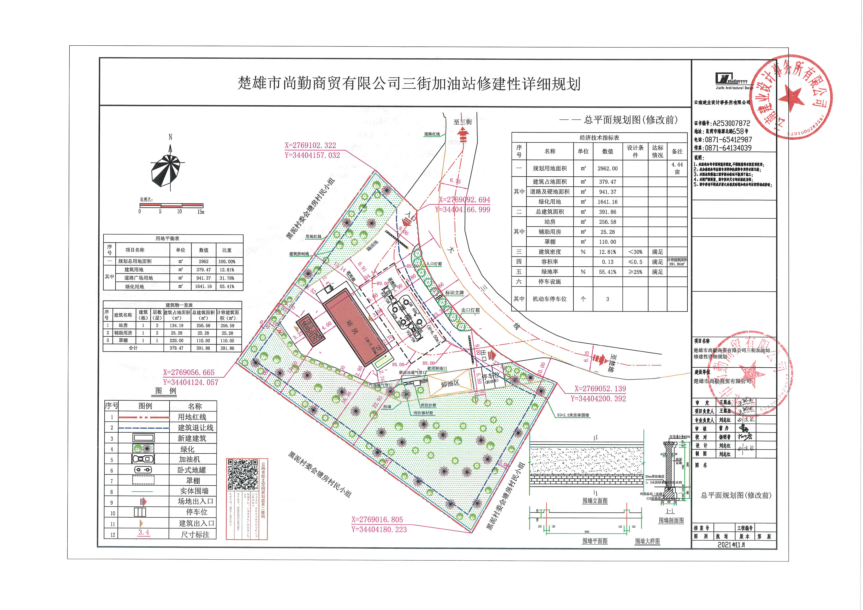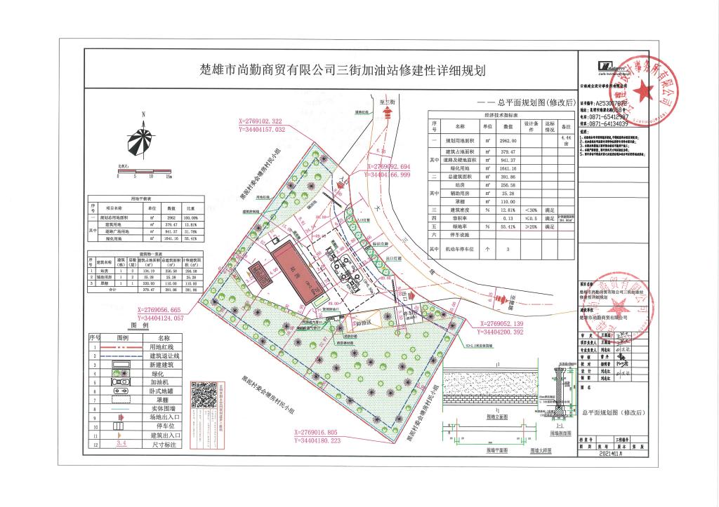 项目名称:楚雄市尚勤商贸有限公司三街加油站修建性详细规划(变更)