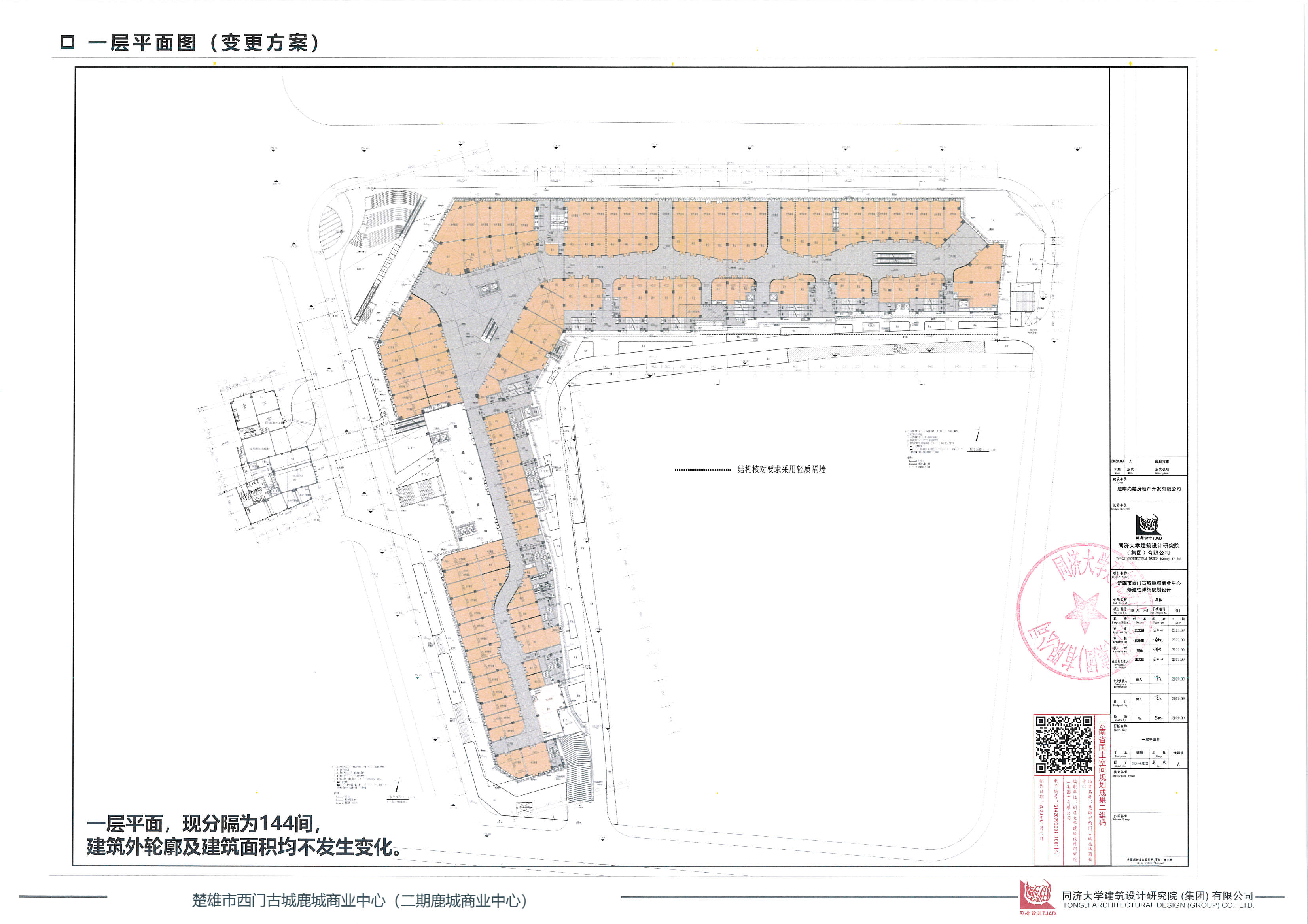 项目简介:楚雄市西门古城鹿城商业中心(二期鹿城商业中心)项目用地位于楚雄市老城区西门古城片区,地块东临八一路,南临文联街,西临信义街,北临中大街,规划用地面积28.9亩。楚雄市西门古城鹿城商业中心(二期鹿城商业中心)修建性详细规划于2020年9月14日审定实施,现楚雄尚越房地产开发有限公司提出在保持该项目总体布局、经济技术指标等不变前提下,对该项目修建性详细规划进行如下变更:将该项目15#楼负一层、一层的商铺重新进行分隔,负一层原分隔商铺52间,现分隔为92间;一层原分隔商铺42间,现分隔商铺144间。变更前后建筑轮廓、建筑面积均保持不变,且满足相关规范要求、技术标准。