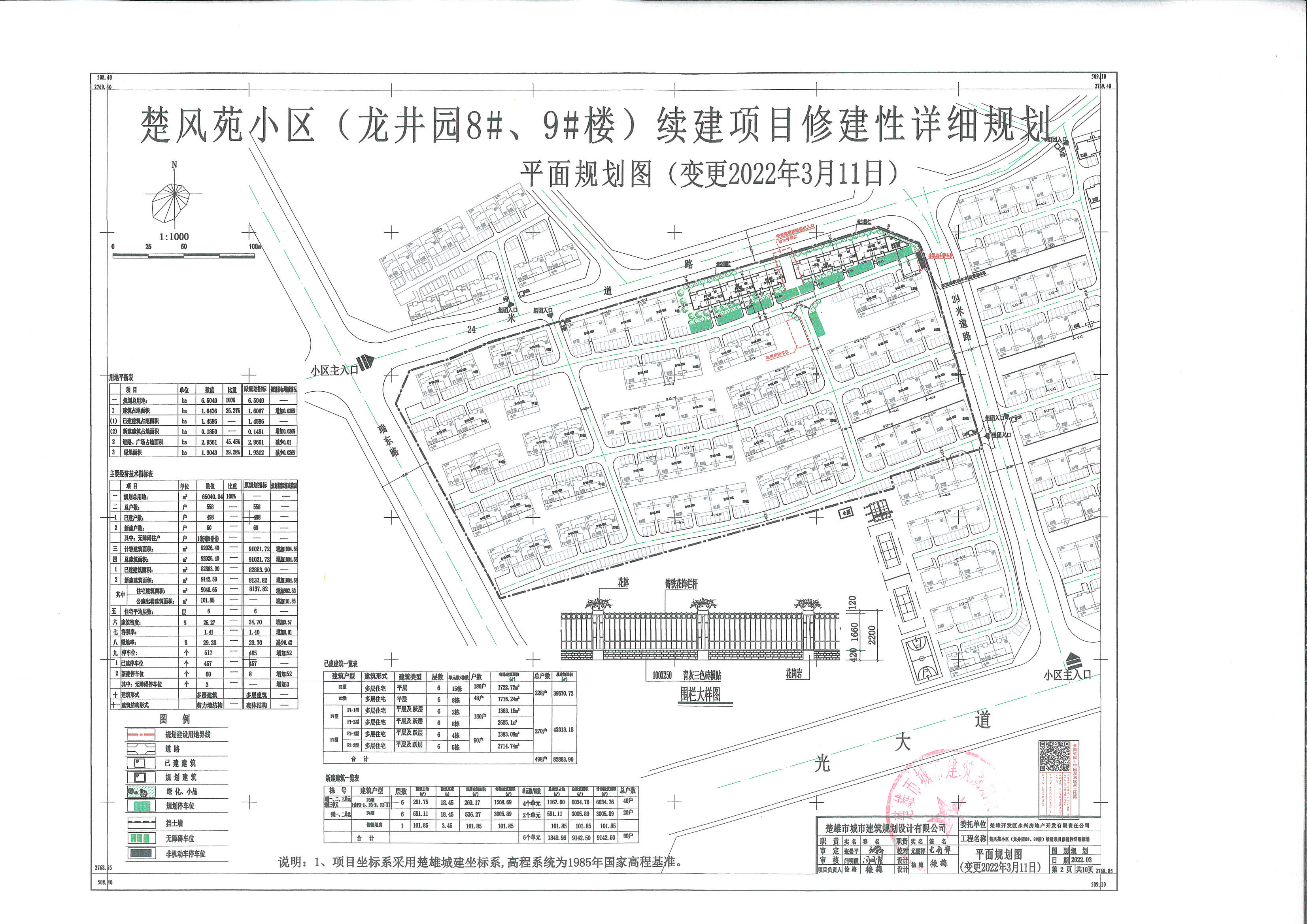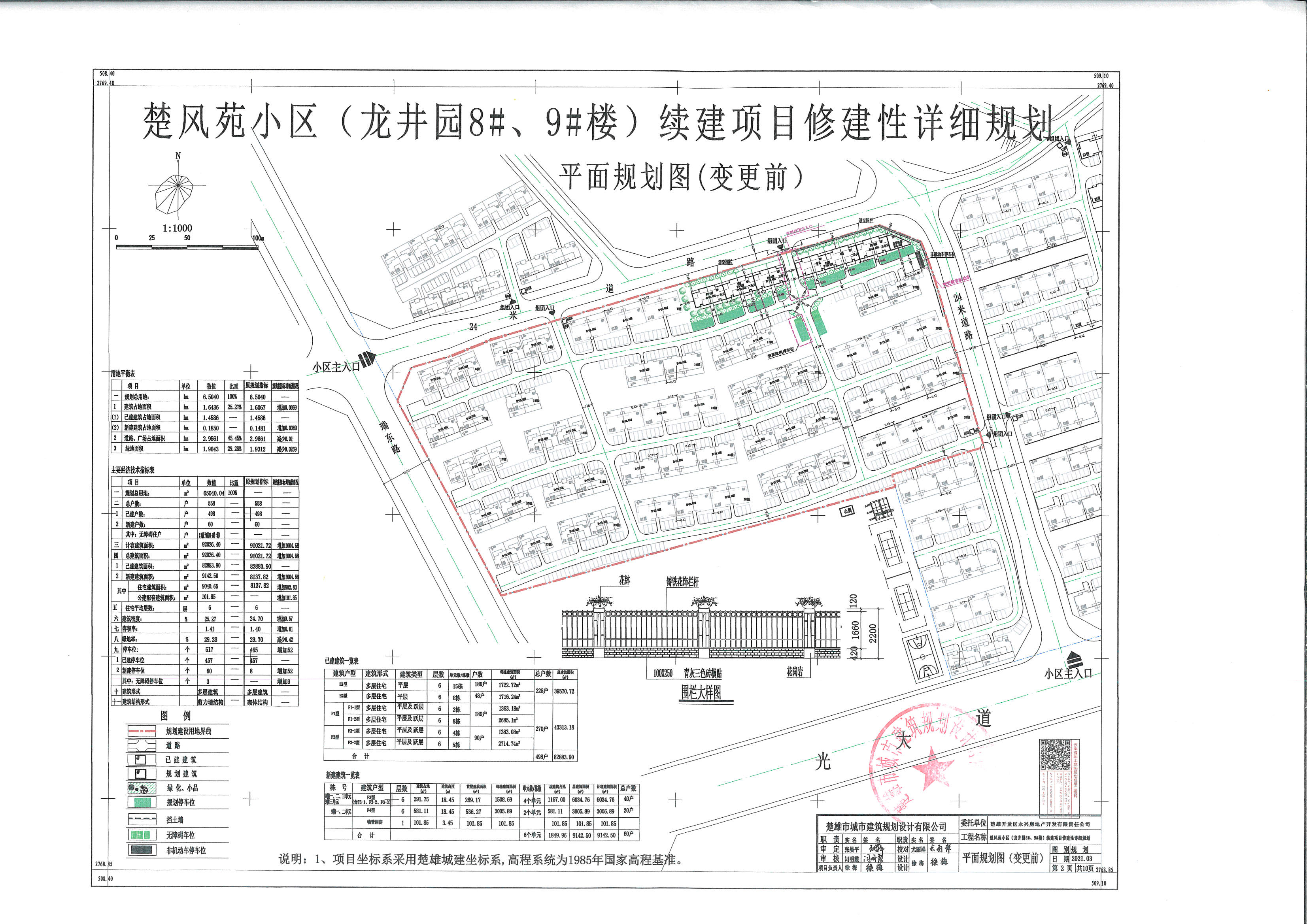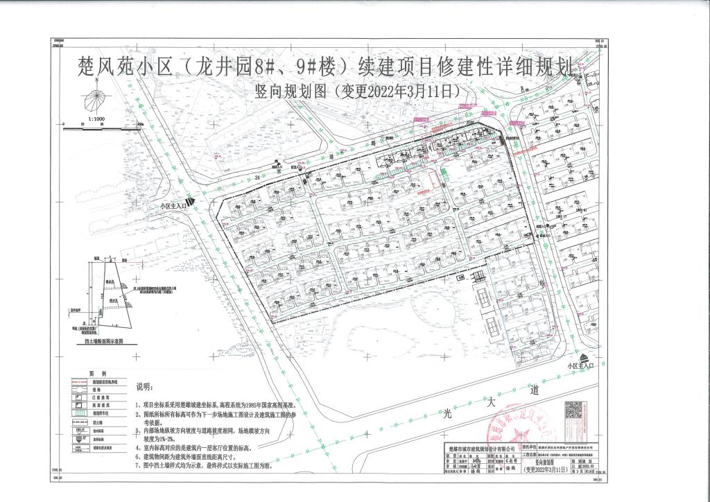 项目名称:楚风苑小区(龙井园8#、9#楼)续建项目修建性详细规划(变更)