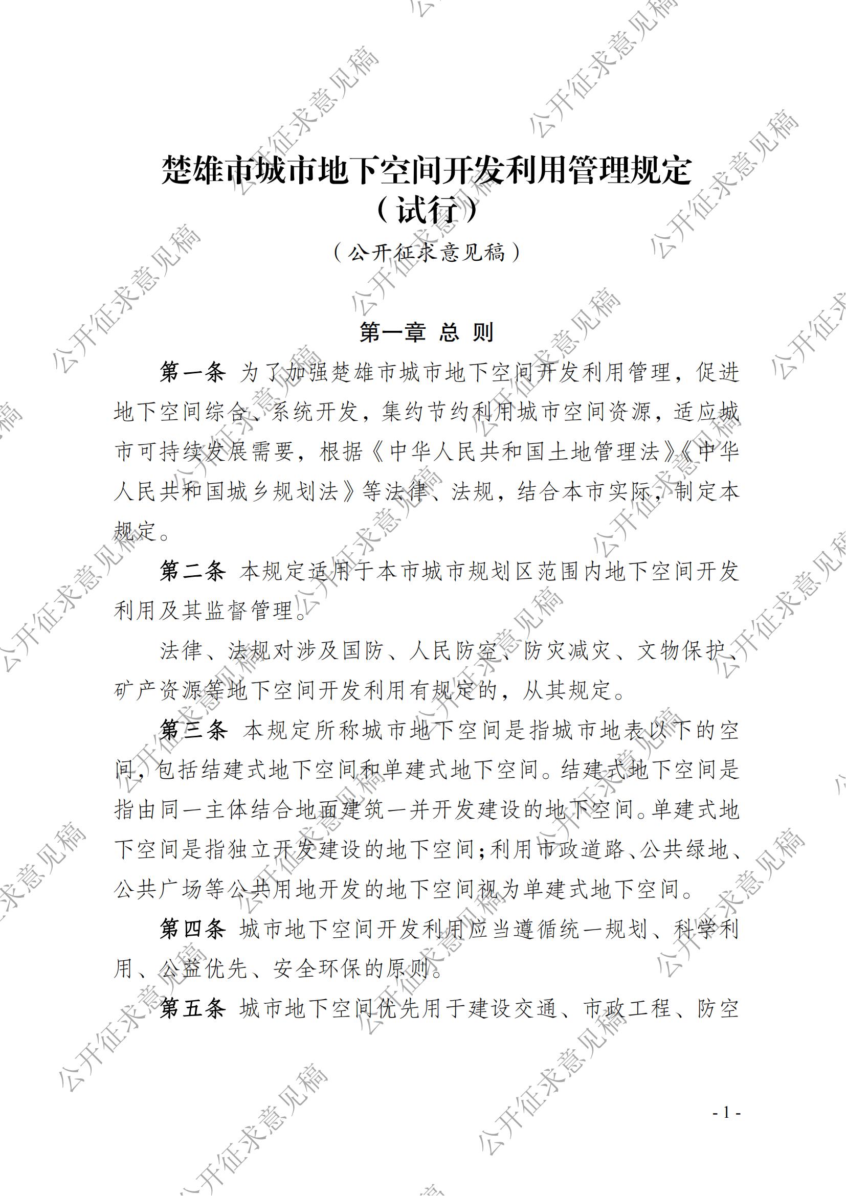 附:《楚雄市城市地下空间开发利用管理规定(试行)》(公开征求意见稿)