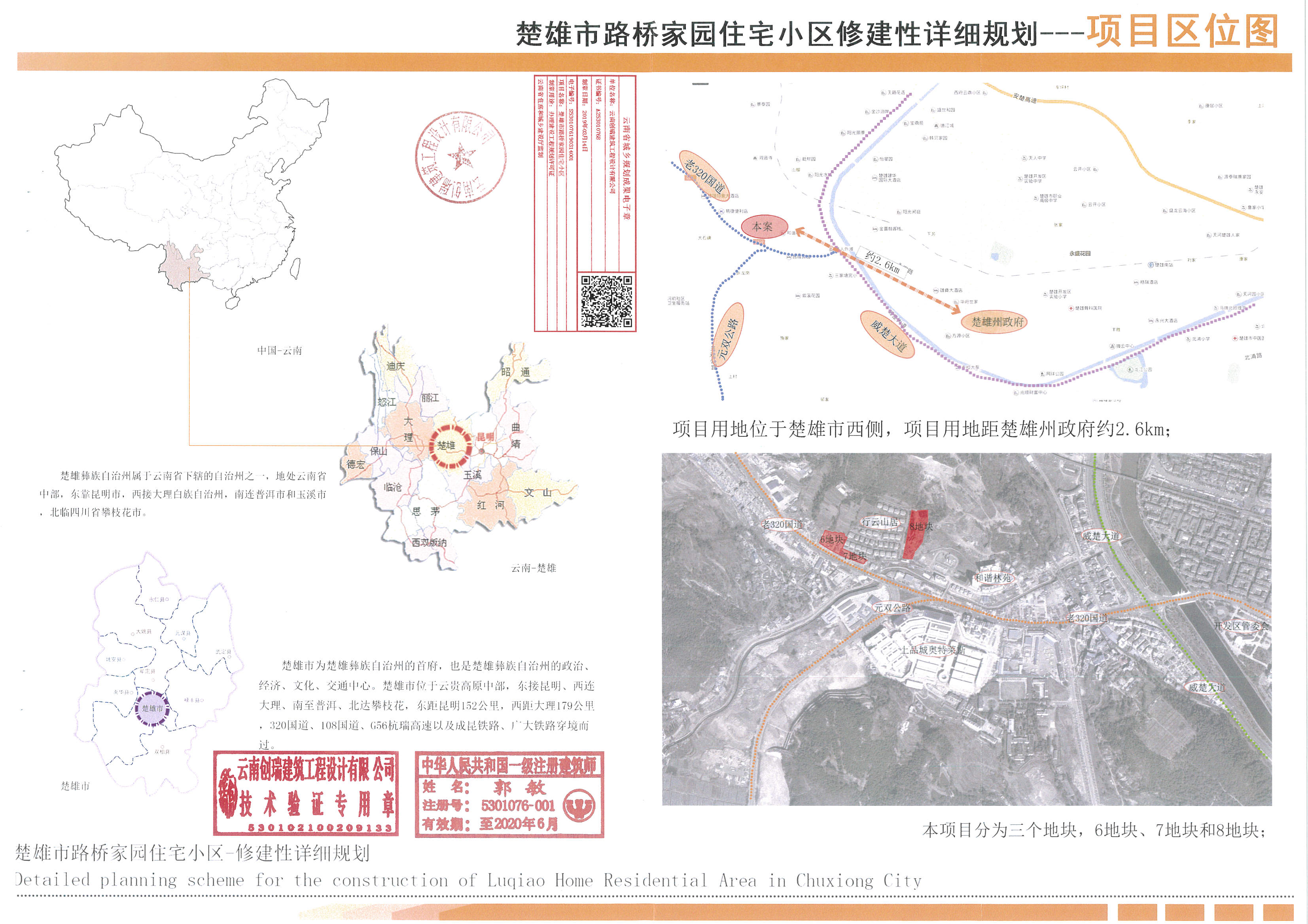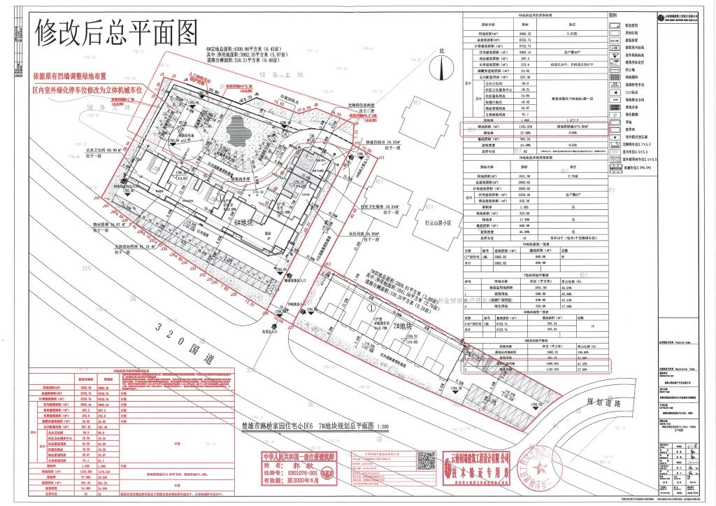 项目简介:项目用地位于楚雄市西北部,地块东临消防共用通道,南临老320国道,西、北侧临现状空地,规划用地面积5.97亩。楚雄市路桥家园住宅小区(6、7、8号地块)修建性详细规划于2019年3月20日审定实施。现楚雄云熙房地产开发有限公司提出,由于现状场地高差,6号地块北侧有8米高挡墙,原规划绿地及机动车停车位无法实施,在保持6号地块建筑定位、工程管线等不变,且所有经济技术指标均满足相关规范要求的前提下,对路桥家园住宅小区6号地块修建性详细规划进行如下变更: